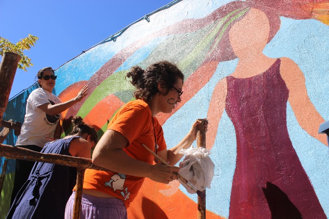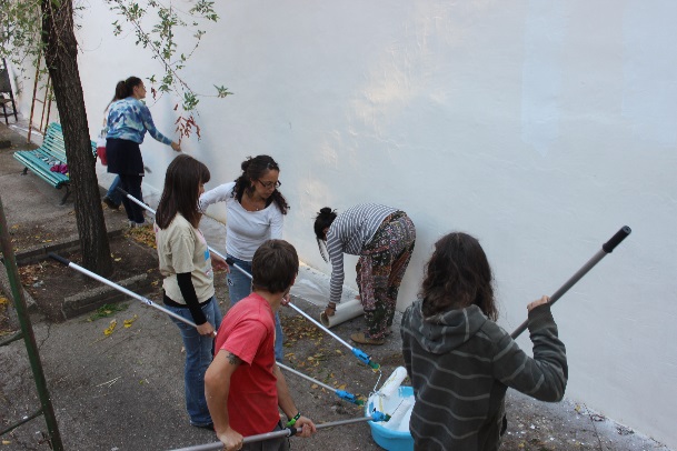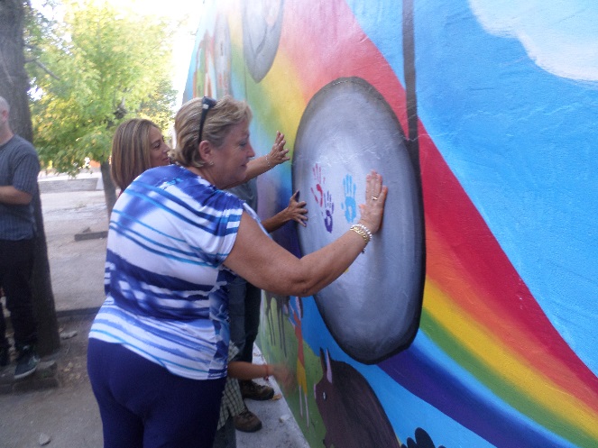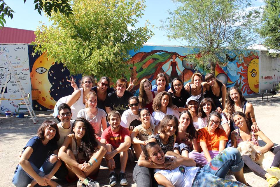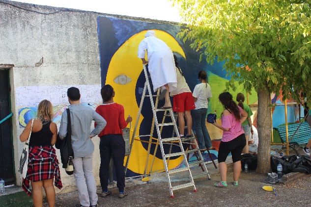 Az említett fogalmakkal magyarázható leginkább az, ami 2015.09. 13-21 között egy spanyolországi kisvárosban, Alburquerqueben történt. Hat ország, 22 fiatalja tanult, dolgozott fejlődött együtt nyolc napon át. Módszertani képzésben volt részünk, ahol megismerkedhettünk a közösségi falfestés módszertanával, egymással és talán magunkkal is. A képzést két bájos magyarországi lány Kriszta és Eszter tartotta, ők fejlesztették eddig módszerüket, nagyrészt gyerekekkel dolgozva és mutatták be nekünk.